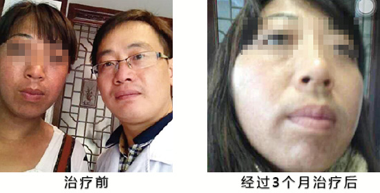 三次复诊(2013年2月10日):经过三个月治疗后,颈部、胸部颈、双上肢皮肤黑褐色颜色消退,皮肤接近正常,嘱患者继续巩固治疗一个月。2014年5月随访,患者自述吃完巩固药物后停药,现在皮肤正常身体健康,小程说:“感谢德懿堂李志忠院长精心治疗,让我重获新生,我会为德懿堂做一名义务宣传员”。
