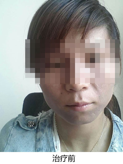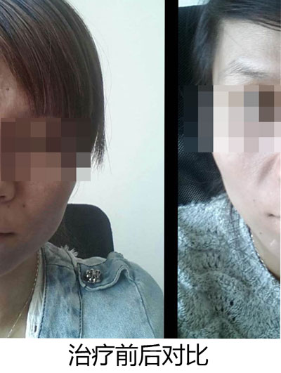患者女性,36岁。患者患有皮肤黑变病,患者面部症状明显,呈渐进性慢性经过,呈现以暴露部位为主的皮肤色素沉着,面部有大面积不同程度的色素沉着。由于患病部位在患者脸部,严重影响了患者的正常生活。为进行治疗,患者自行用过外用软膏,并先后在当地,北京等全国多家医院进行过治疗。医院给予治疗(内容不详)。多种方法治疗后症状未出现根本性好转。由于长时间的奔波治疗但却未有根本性的好转,患者的黑变病症状越发严重。