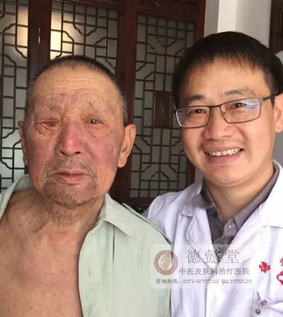 经过六天的短暂治疗后,事实胜于雄辩。5月17号再次来到德懿堂复诊的张大叔脸上已经趋向光滑,之前的浮肿干裂蜕皮现象基本全无,神情也恢复了往日的光彩。临走之前拉着李院长的手激动的哭了,不停的道谢,还要给李志忠院长磕头。称李院长真是“李仙”,终于让自己摆脱病痛的折磨了。感谢李院长,感谢德懿堂。